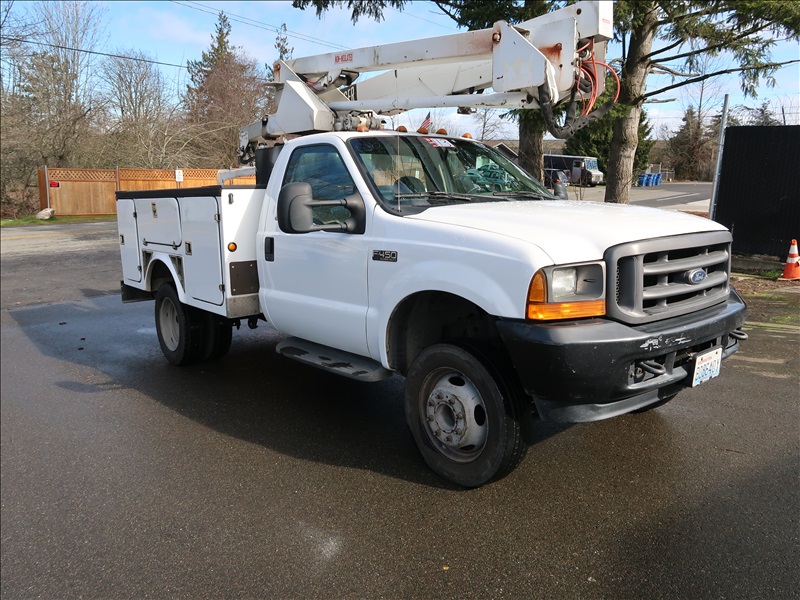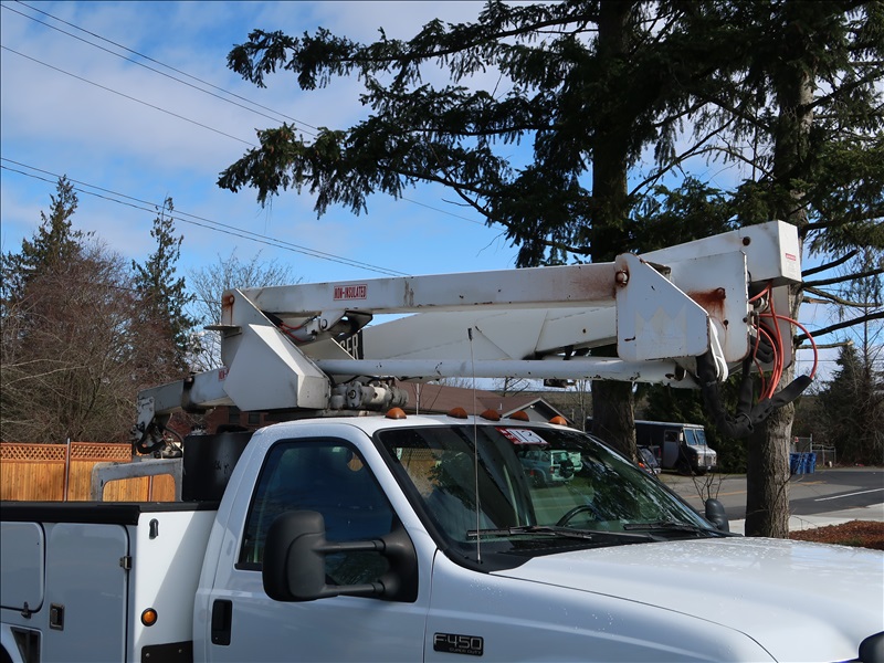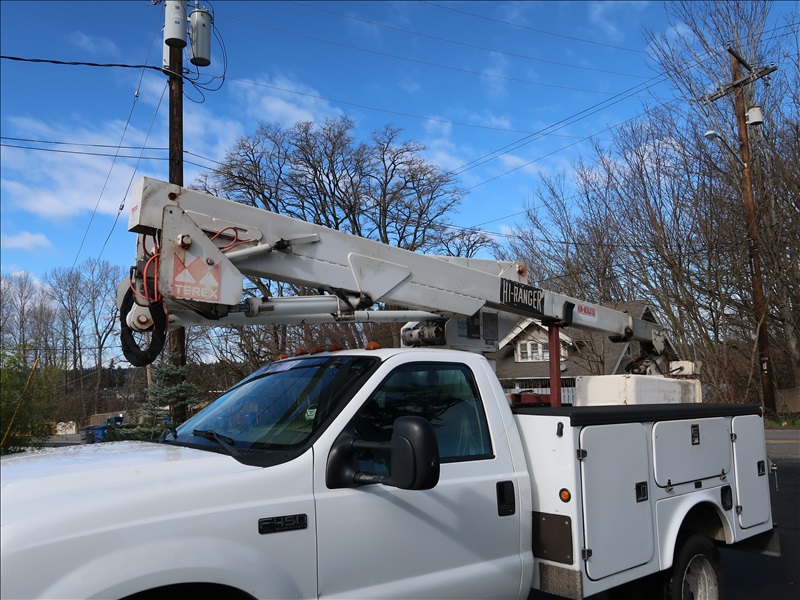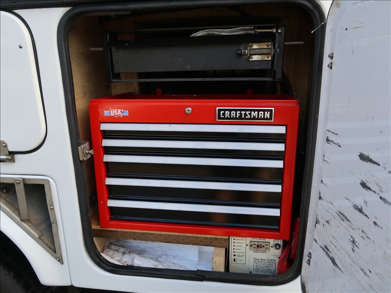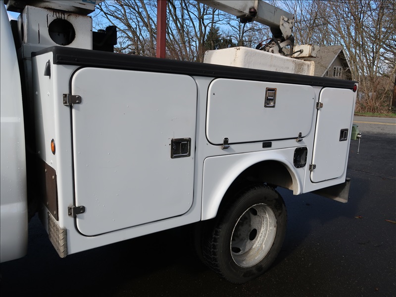 BUCKET TRUCK, DIESEL AUTO, TEREX TELELECT TL38P, HYDRAULIC, 300 LB CAP, 38' BUCKET, PURE SINE INVERTER, 6-DOOR FIBERGLASS S/B W/(2) CRAFTSMAN 5-DRAWER BOTTOM BOX, PTO