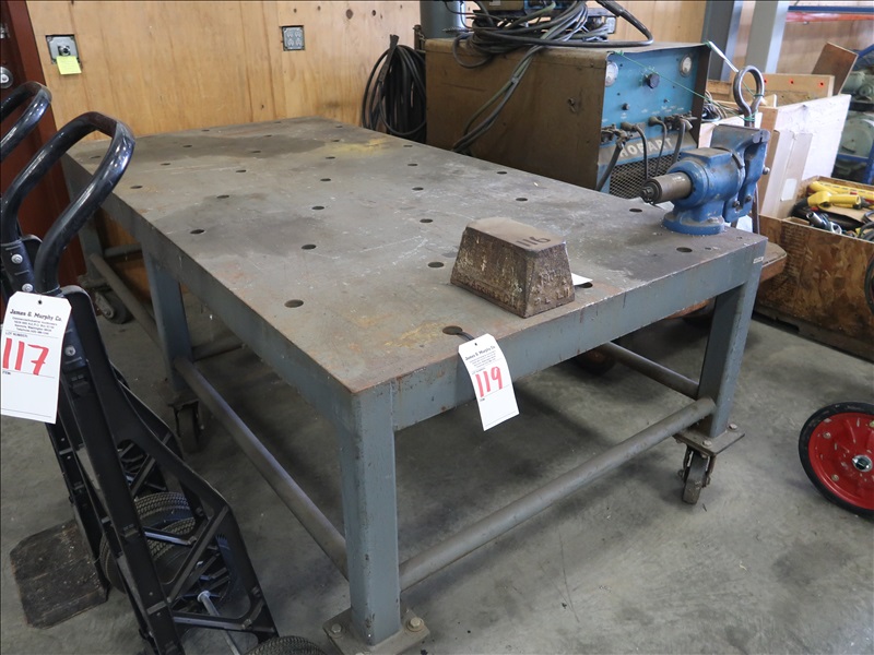 4' X 8' X 3/4" STEEL WORKBENCH ON CASTERS, 6" PIPE VISE