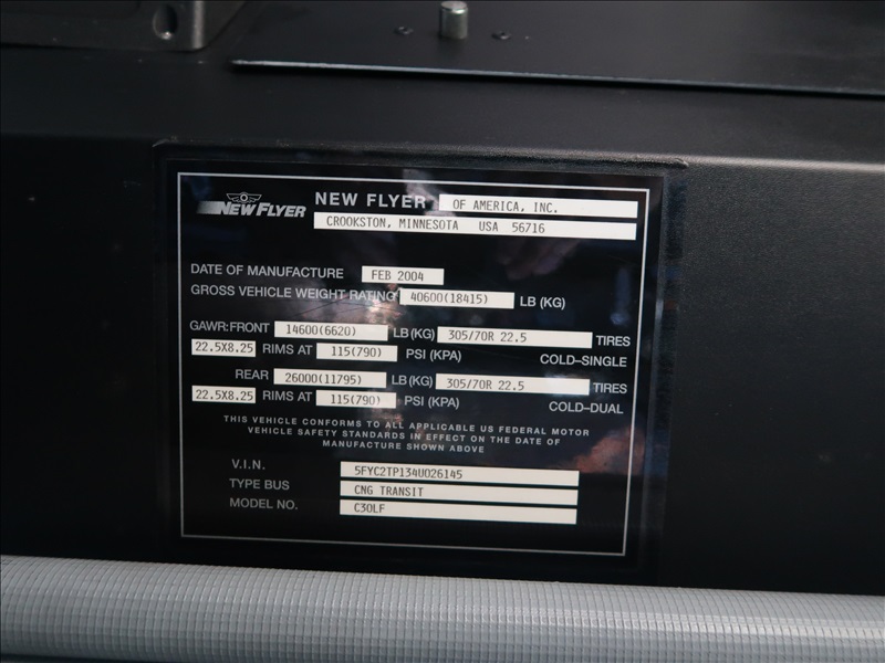 25-PASSENGER BUS, C30LF CNG (NO FARE COLLECTORS, RADIOS OR DRIVERS CAMERA)