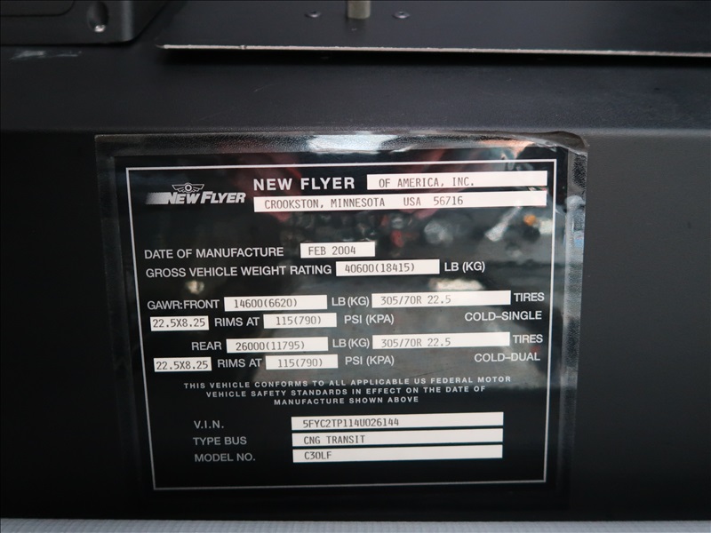 25-PASSENGER BUS, C30LF CNG (NO FARE COLLECTORS, RADIOS OR DRIVERS CAMERA)