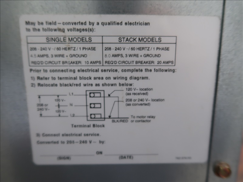 DUAL STACK COMMERCIAL DRYER UNIT, 4 SECTION HEAT CONTROLS, 120 VAC, 60HZ, 16A, SINGLE PHASE