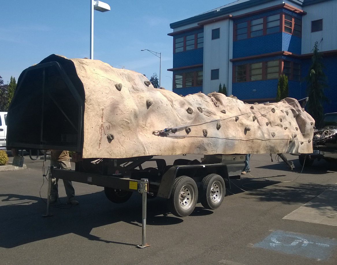 26' TRAILER MOUNTED HYDRAULIC CLIMBING WALL, 4 CLIMBING LANES, AUTO BELAY SYSTEM