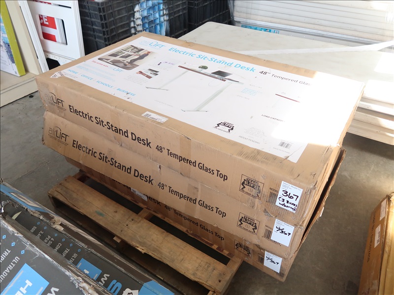 LOT, (3) AIR LIFT 65927 48" TEMPERED GLASS TOP ELECTRIC SIT-STATION DESKS (DAMAGED)