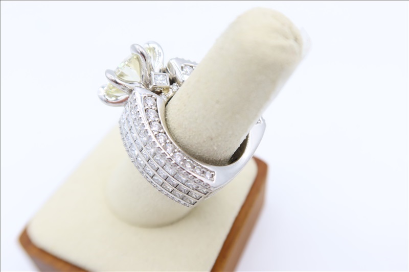 LADIES PLATINUM RING, ROUND BRILLIANT DIAMOND WEIGHING APPROX 6.22 CT, SETTLING W/MULTIPLE DIAMONDS, APPROX 5.31CT ESTIMATED TOTAL DIAMOND WEIGHT APPROX 11.53 CTS *SUBJECT TO COURT APPROVAL