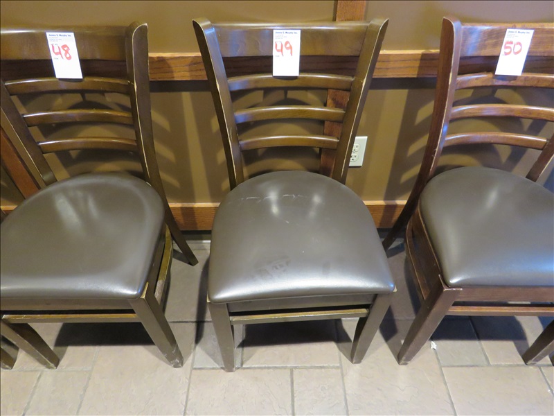 WOOD FRAMED LADDER BACK PADDED DINING CHAIR (BROWN SEAT)