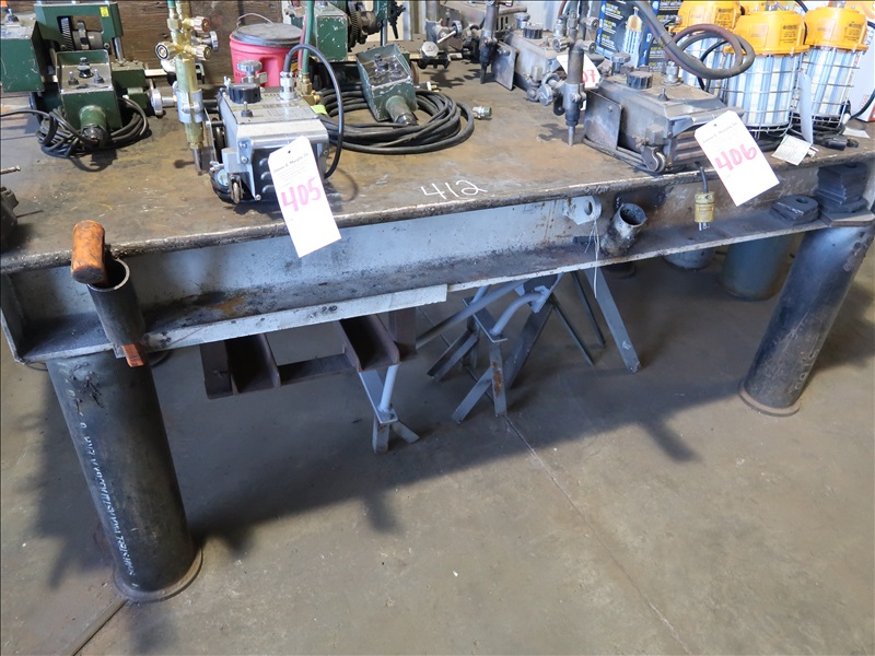 APPROX 4' X 8' X 1" STEEL TABLE (MUST STAY UNTIL 12 PM, TUESDAY, JULY 6TH)