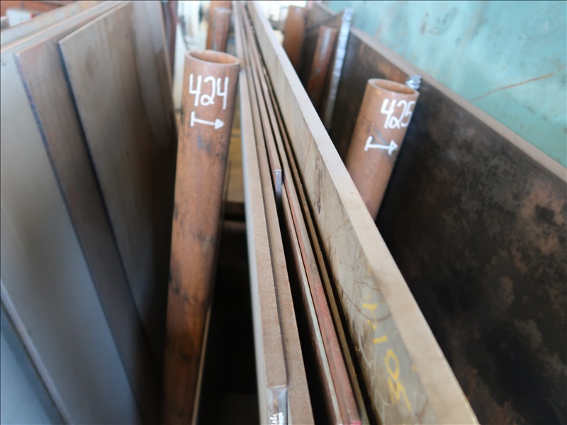LOT, MISC STEEL SHEETS & REM IN THIS SECTION OF RACK (BUYER IS RESPONSIBLE TO BRING WHATEVER IS NECESSARY TO REMOVE SHEETS FROM RACK)