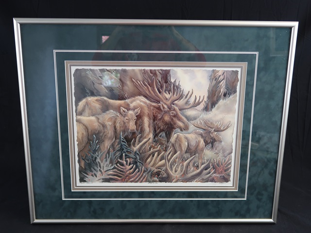 "MOOSIN' AROUND" SIGNED FRAMED PRINT BY JODY BERGSMA 3RD AIP/450 30-1/4" X 24-1/4" (NO CERTIFICATE OF AUTHENTICITY)