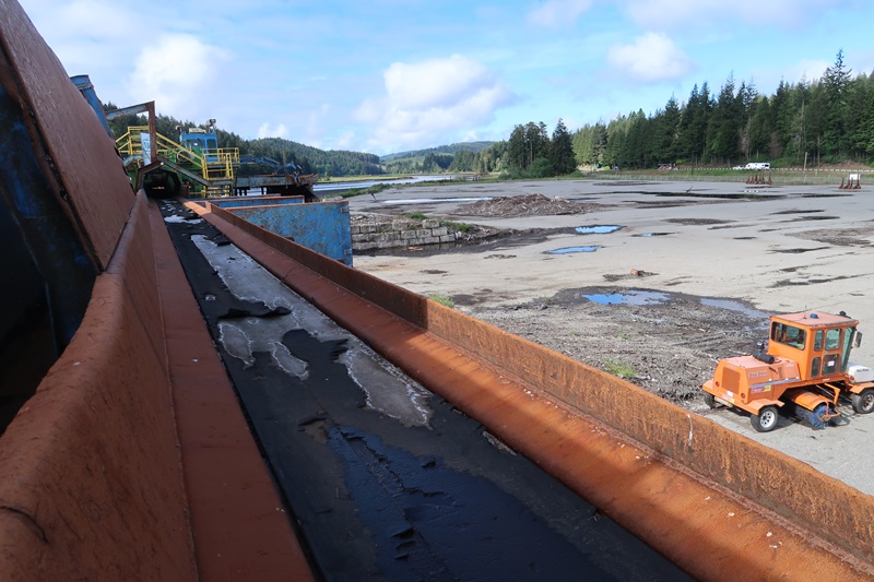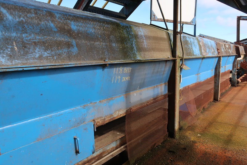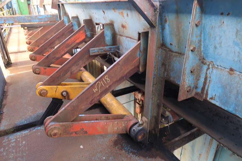 APPROX 24"X120' OUTFEED CONVEYOR (FROM DEBARKER) W/LOG STOP GATE, 4 & 5-ARM LOG KICKERS TO (2) SORT BINS, 3,750 PSI ACCUMULATOR BY LOT 143 BELOW