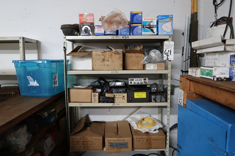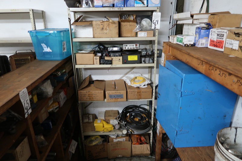 LOT, ASSORTED ELECTRICAL ITEMS W/METAL SHELF