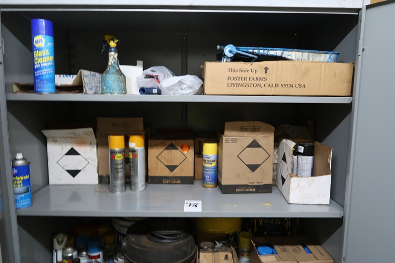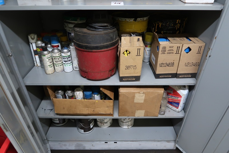 LOT, 2-DOOR METAL LOCKER W/ASSORTED FLUIDS