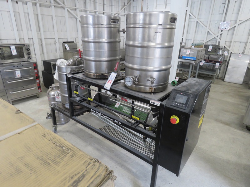LOT, SABCO BREW-MAGIC V350MS 3-VESSEL SYSTEM TO INCLUDE: HLT, MASH TUN W/GRAIN DUMP, BOIL KETTLE, (2) MAGNETIC DRIVE SS PUMPS & 7" HIGH-DEF COLOR TOUCHSCREEN CONTROLLER, SERIES CSA2012