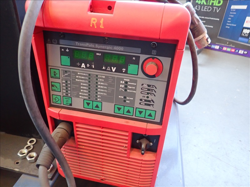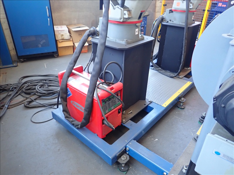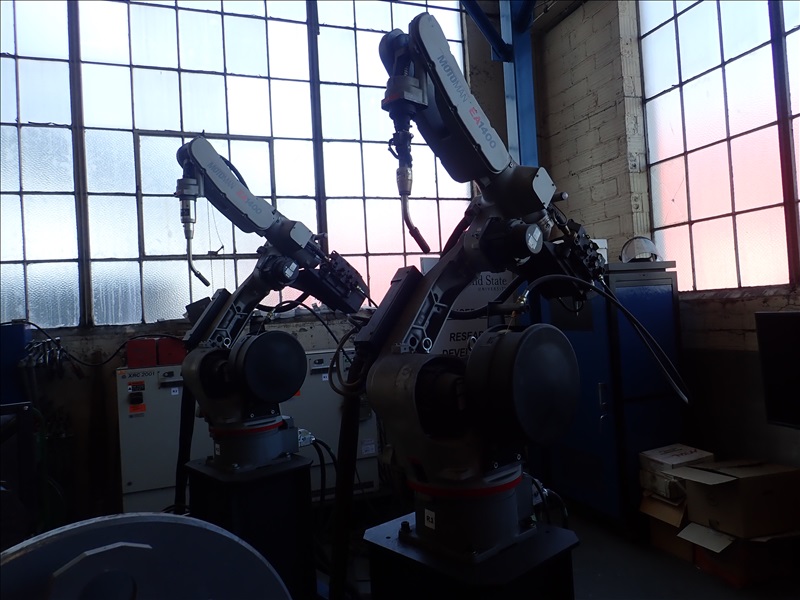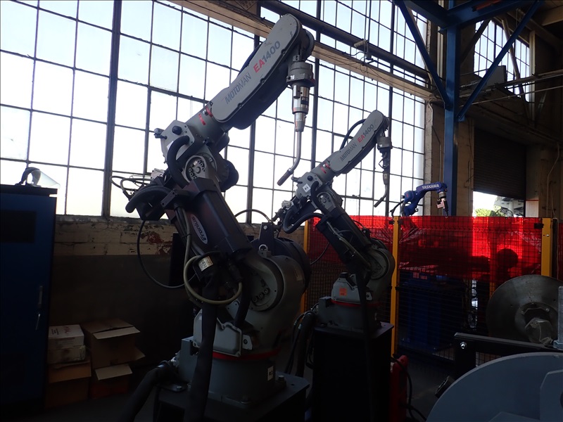 ROBOTIC WELDING SYSTEM W/(2) MOTOMAN EA1400 ROBOT WELDERS, (2) FRONIUS TRANSPULS SYNERGIC 4000 POWER SUPPLIES, KOIKE ARONSON RHS1.5 1,500 LB POSITIONER, (2) YASNAC XRC 2001 POWER SUPPLIES, PENDANT CONTROLS, STEEL FRAME & ACCESSORIES