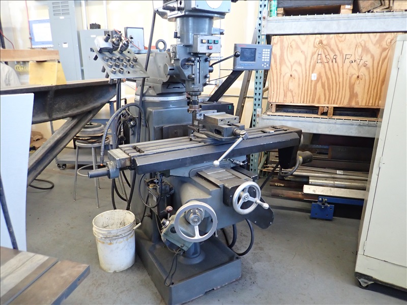 3HP VERTICAL MILLING MACHINE, 9"X48" POWER TABLE, WIZARD 550 DIGITAL READOUT, WILTON VISE, COLLETS