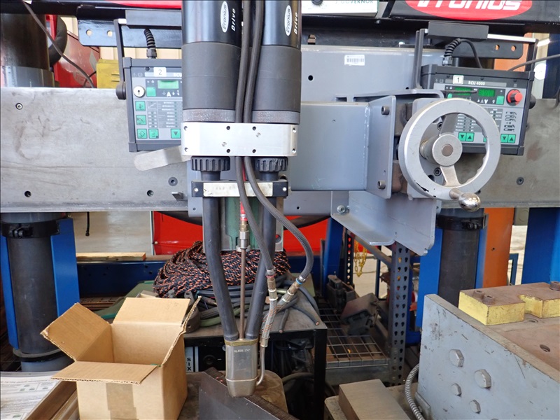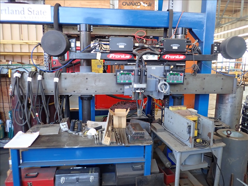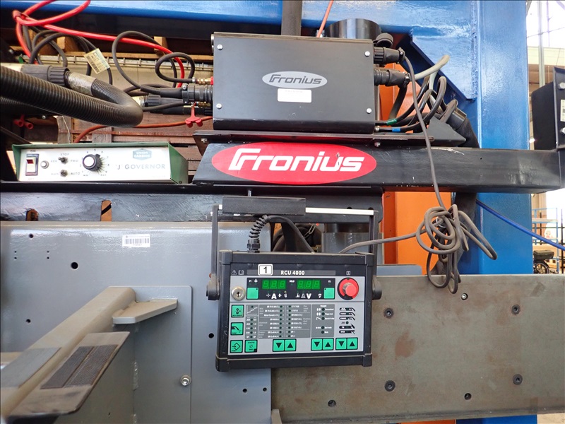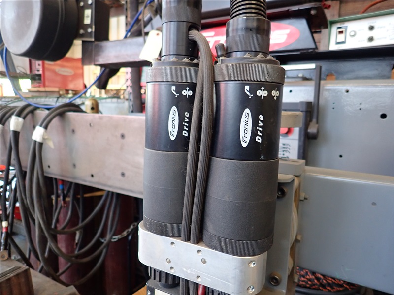11' WELDING SYSTEM W/(2) FRONIUS TRANSPULS SYNERGIC 5000 POWER SUPPLIES, (2) RCU 4000 CONTROLLERS, DUAL HEADS, UNION CARBIDE "J" GOVERNOR