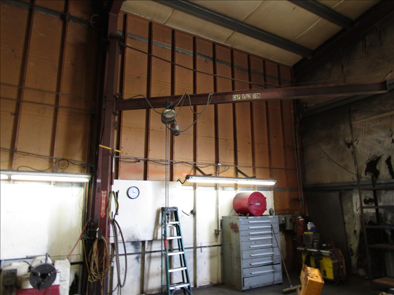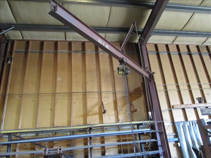 (2) SHOP BUILT 1 TON PEDESTAL JIBS, (1) W/BUDGIT 1/2 TON HOIST & (1) W/LODESTAR 1/2 TON HOIST
