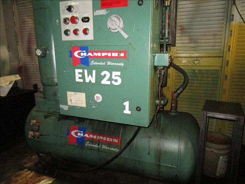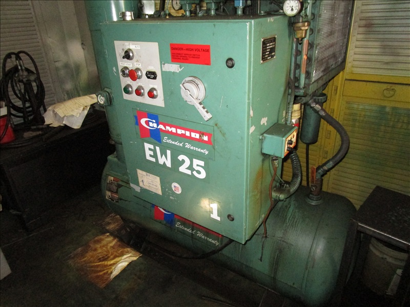 25HP ROTARY SCREW AIR COMPRESSOR, TANK MOUNTED, S/N: RC1371, HRS: 40,185 (NO CONTROLS DUE TO RECENT VANDALISM)