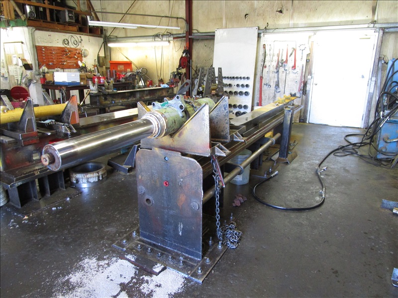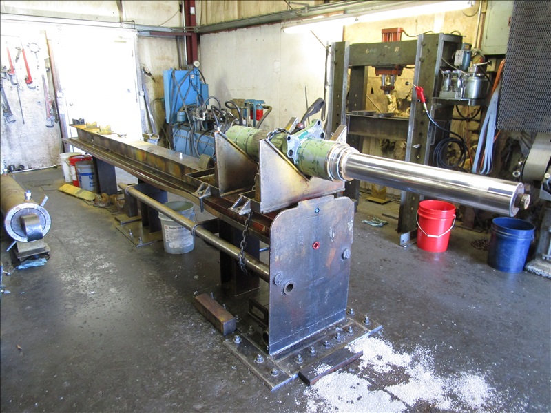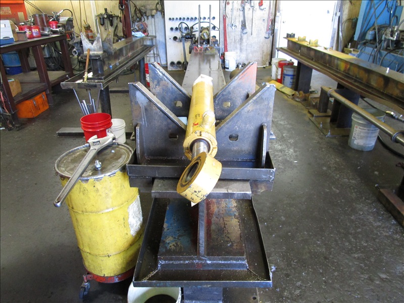 (2) SHOP BUILT 16' HYDRAULIC CINDER WORK/TEST BENCHES W/HYDRAULIC PUMP