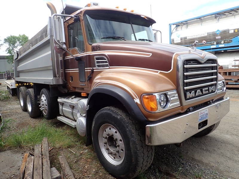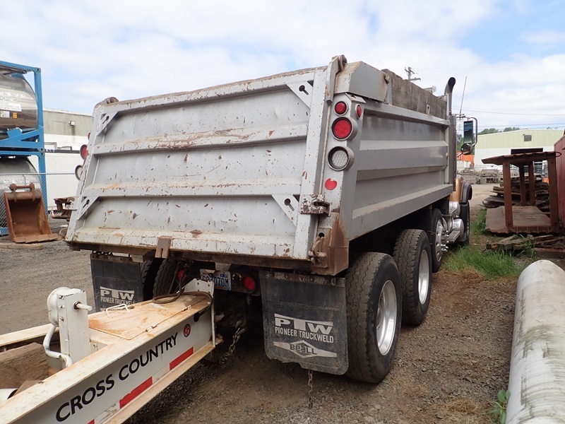 TRI/A DUMP TRUCK, 12.0L - 435HP, 18 SPD, CAMEL BACK SUSPENSION, DROP AXLE, 16' 6'' STEEL BOX W/HIGH LIFT GATE, PLUMBED FOR PUP