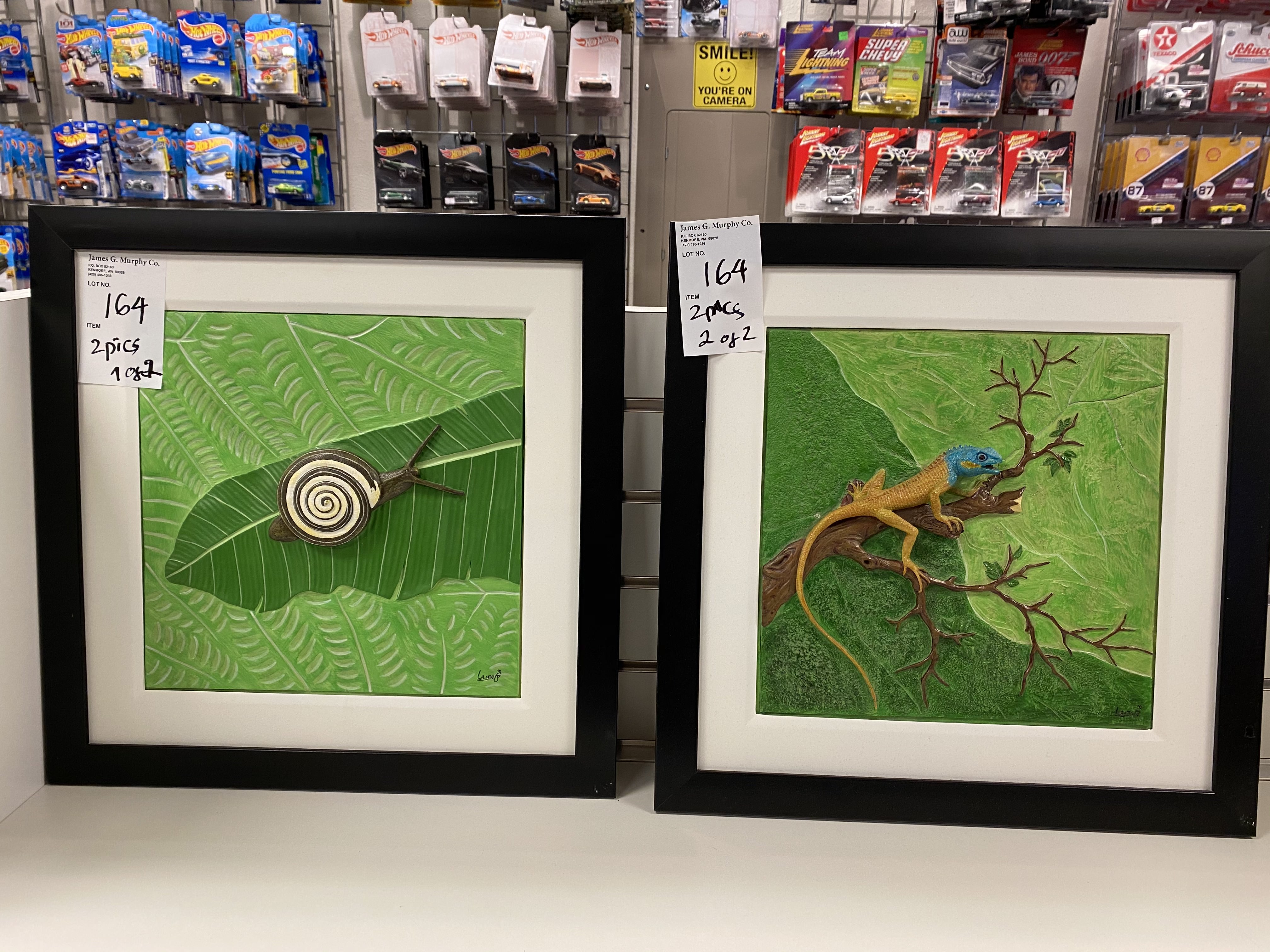 Lot of 02 pictures in black frame, approx. 18" x 18"