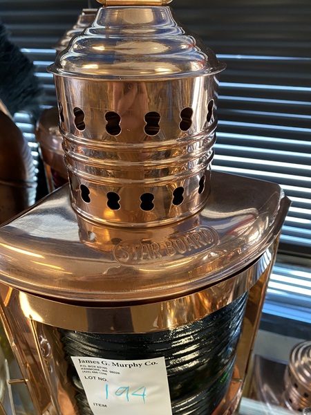 Port ship lantern (Starboard) with oil lamp approx. 14.5" H x 9.5" W