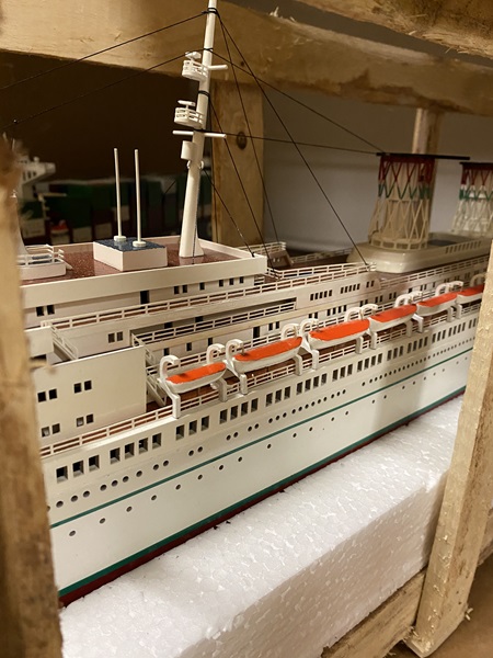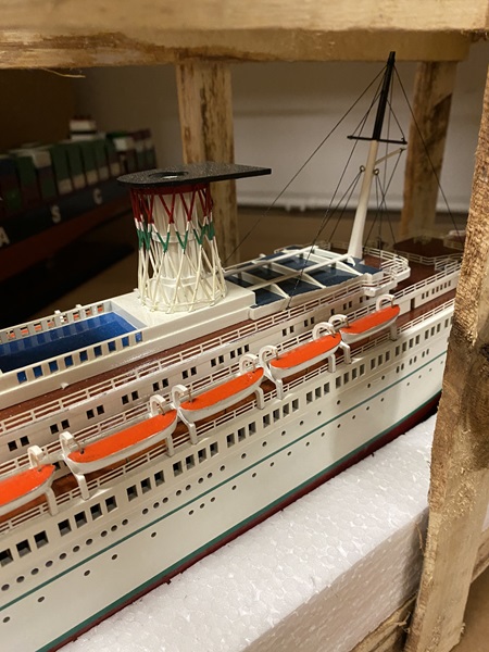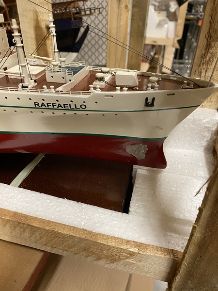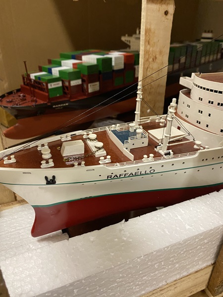 SS Raffaello ship model (Paint issue on hull) Dimension approx.: 36.5? L x 4.5? W x 11.5? H. The model is already built, NOT a model ship kit.