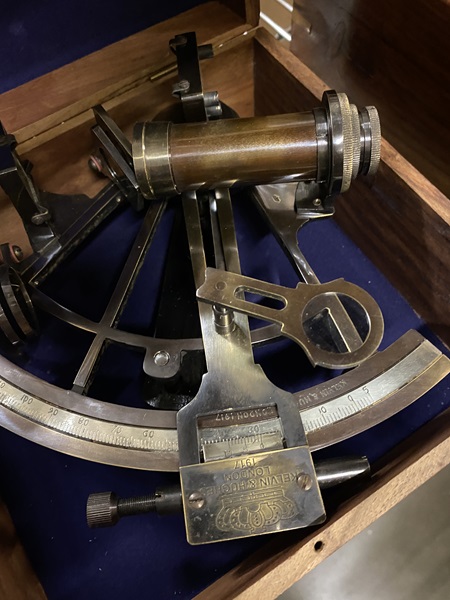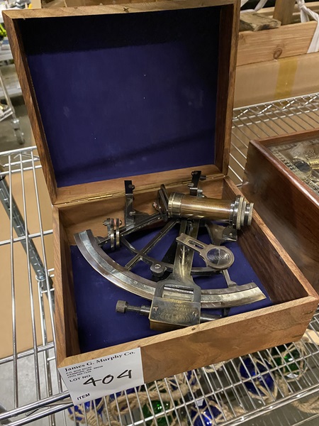 Kelvin & Hughes Sextant Antique finish, Wood box approx. 9" x 8" x 4.25"