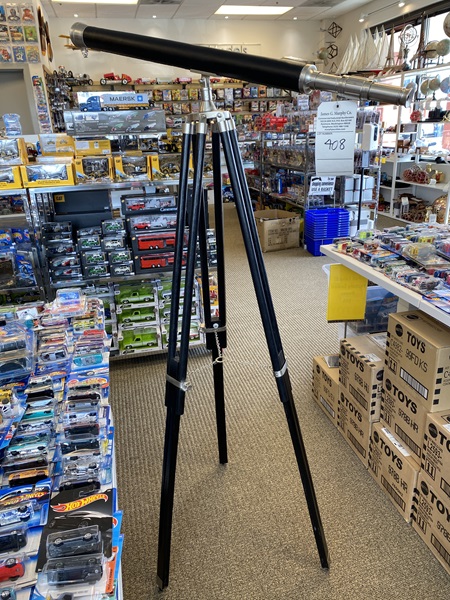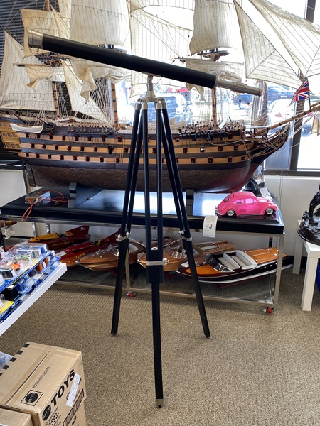Nautical Decor Telescope Black Wooden Stand approx. 37" L x 62" H