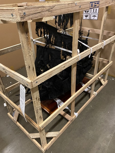 Flying Dutchman in wooden crate Dimension approx.: 35? (long) x 14.5? (wide) x 31? (high). The model is already built, NOT a model ship kit.