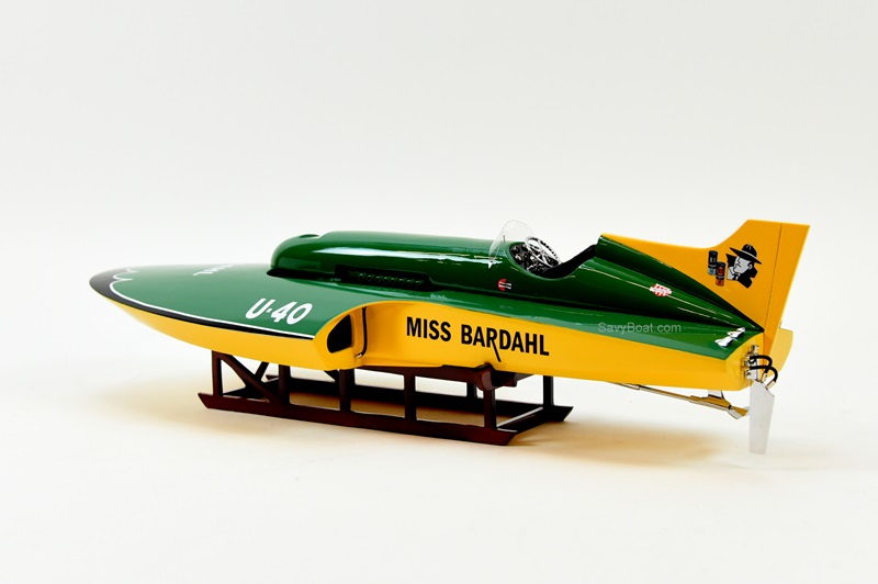Miss Bardahl hydroplane model Dimension approx.: 26? L x 11? W x 5.5? H. The model is already built, NOT a model ship kit
