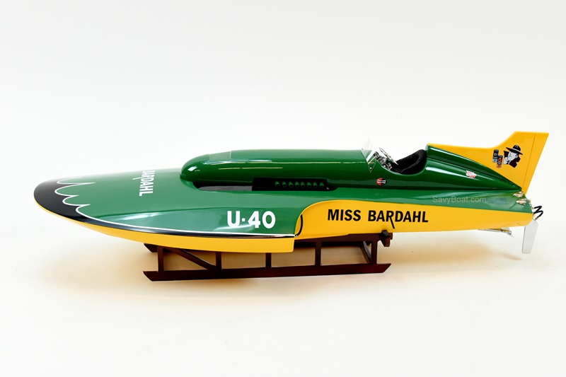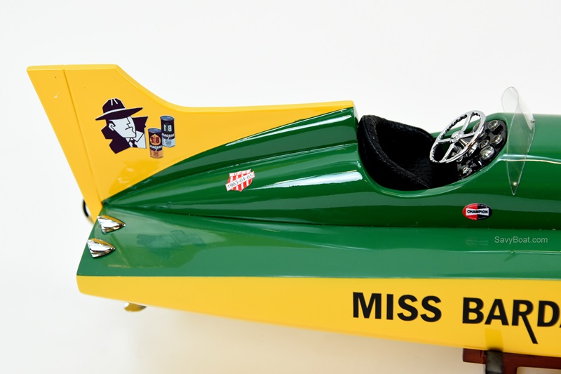 Miss Bardahl hydroplane model Dimension approx.: 26? L x 11? W x 5.5? H. The model is already built, NOT a model ship kit