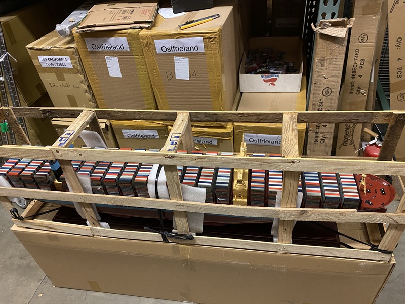 Maersk Line in wooden crate with box Approx. 48" L. Already built. Not a kit.