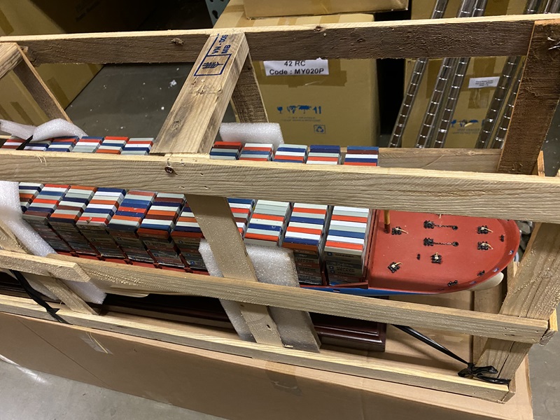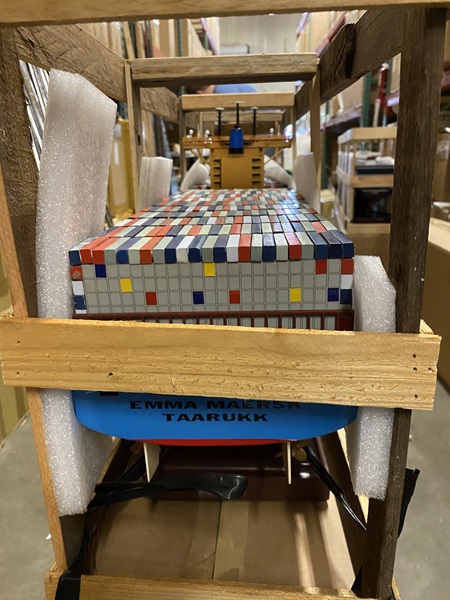 Maersk Line in wooden crate with box Approx. 48" L. Already built. Not a kit.