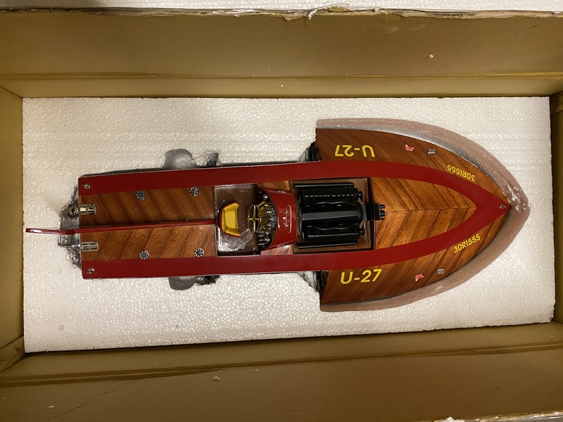 Slo-mo-shun IV - U27 in retail box Dimension approx.: 30? L x 12.5? W x 8.5? H – Scale 1:12. The model is already built, NOT a model ship kit