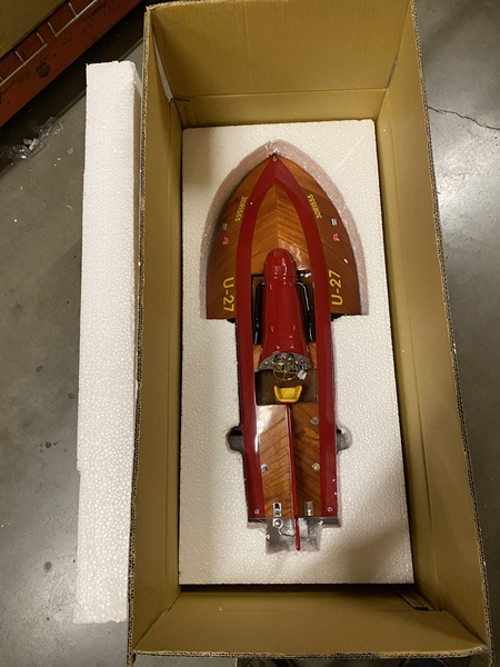 Slo-mo-shun IV - U27 in retail box Dimension approx.: 30? L x 12.5? W x 8.5? H – Scale 1:12. The model is already built, NOT a model ship kit