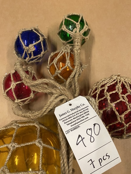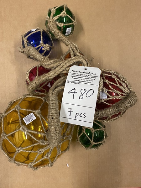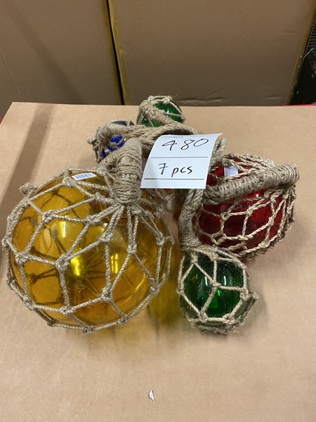 Glass & Rope Fishing Float 7 pcs Approx. 8" dia (1 pc) Approx. 6" dia (1 pc) Approx. 4" dia (5 pcs)
