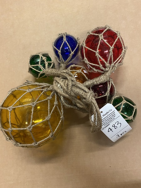 Glass & Rope Fishing Float 7 pcs Approx. 8" dia (1 pc) Approx. 6" dia (1 pc) Approx. 4" dia (5 pcs)