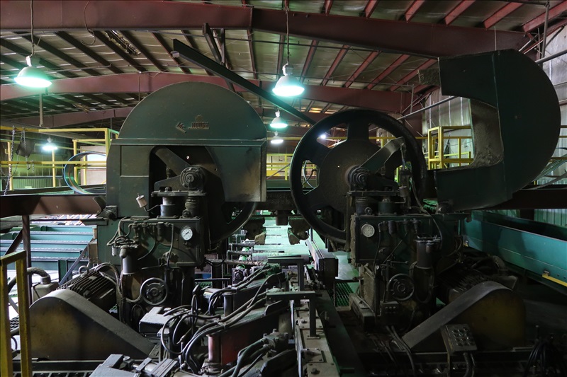 TEMPOSONIC POSITIONED 6' VERTICAL BAND RESAWS W/(2) TOSHIBA 200 HP/1,180 RPM MOTORS, AIR STRAIN, 8' FIXED LINE BAR W/(3) KNURLED ROLLS & (3) POWERED HOLD OVER ROLLS, CONTROLS, ELECTRICS, HYDRAULICS, SPARE PARTS & SAWS