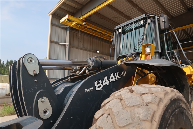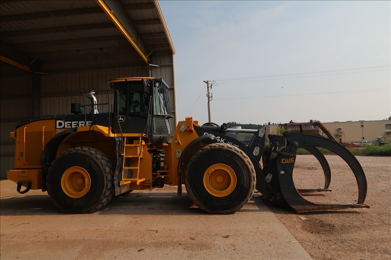 RUBBER TIRE LOG LOADER W/CWS LOG FORKS, JOHN DEERE DIESEL ENGINE, CAB GUARDS, 29.5-25 TIRES