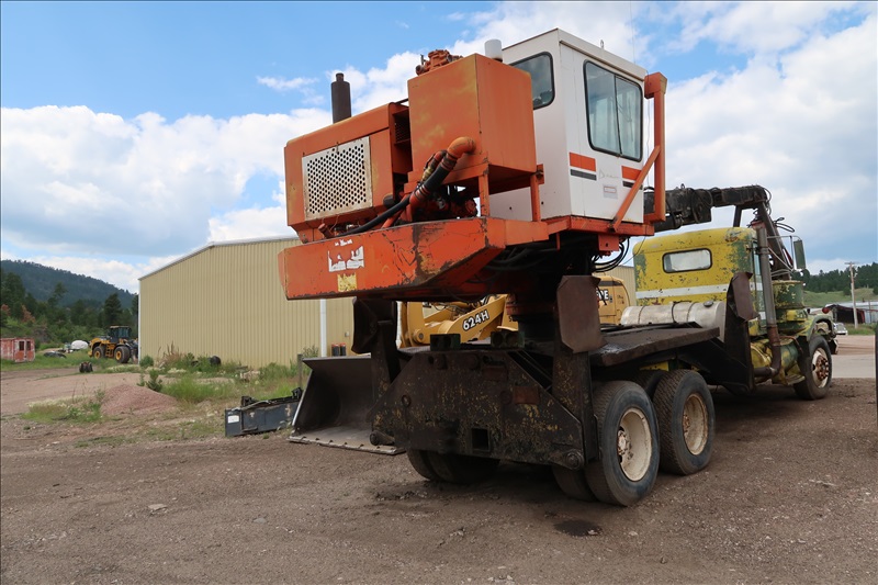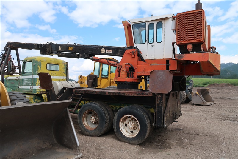 HYDRAULIC OPERATED LOG LOADER W/SWIVEL GRAPPLE, JOHN DEERE DIESEL ENGINE, HYDRAULIC PUMP & TANK, ENCLOSED CAB, DOWN RIGGERS MOUNTED ON 1972 KENWORTH TANDEM AXLE TRACTOR, DIESEL ENGINE, EATON FULLER TRANSMISSION