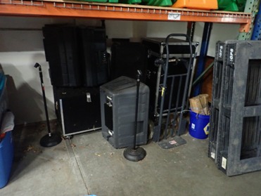 LOUD SPEAKERS, SPEAKER STANDS, MICS & ASSORTED AUDIO VISUAL SUPPLIES