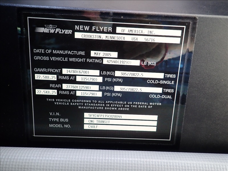 39-PASSENGER KNEELING BUS, CUMMINS 8.3L CNG, HOUR METER READS: 2,480 (NO FARE COLLECTORS, RADIOS OR CAMERA SYSTEM)