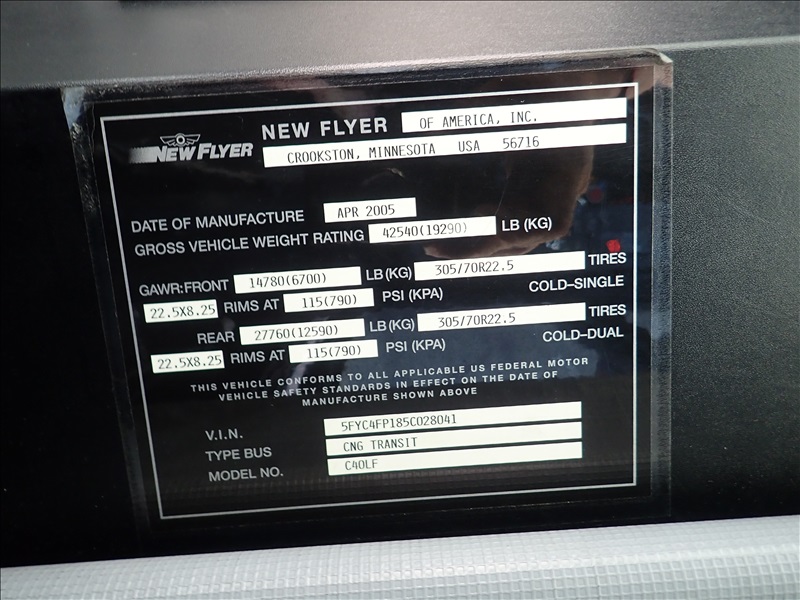 39-PASSENGER KNEELING BUS, CUMMINS 8.3L CNG, HOUR METER READS: 52,043 (NO FARE COLLECTORS, RADIOS OR CAMERA SYSTEM)