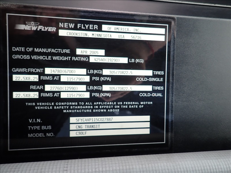 25-PASSENGER KNEELING BUS, CUMMINS 8.3L CNG, HOUR METER READS: 35,120 (NO FARE COLLECTORS, RADIOS OR CAMERA SYSTEM)
