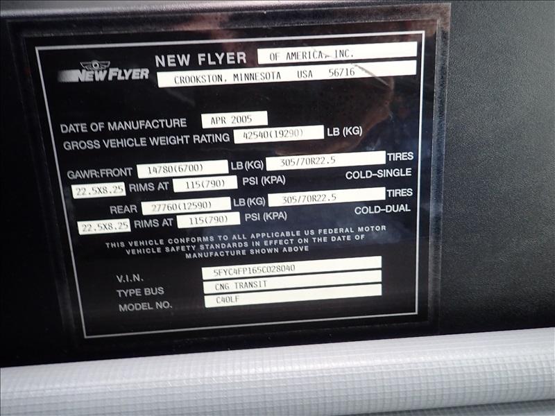 39-PASSENGER KNEELING BUS, CUMMINS 8.3L CNG, HOUR METER READS: 52,021 (NO FARE COLLECTORS, RADIOS OR CAMERA SYSTEM)