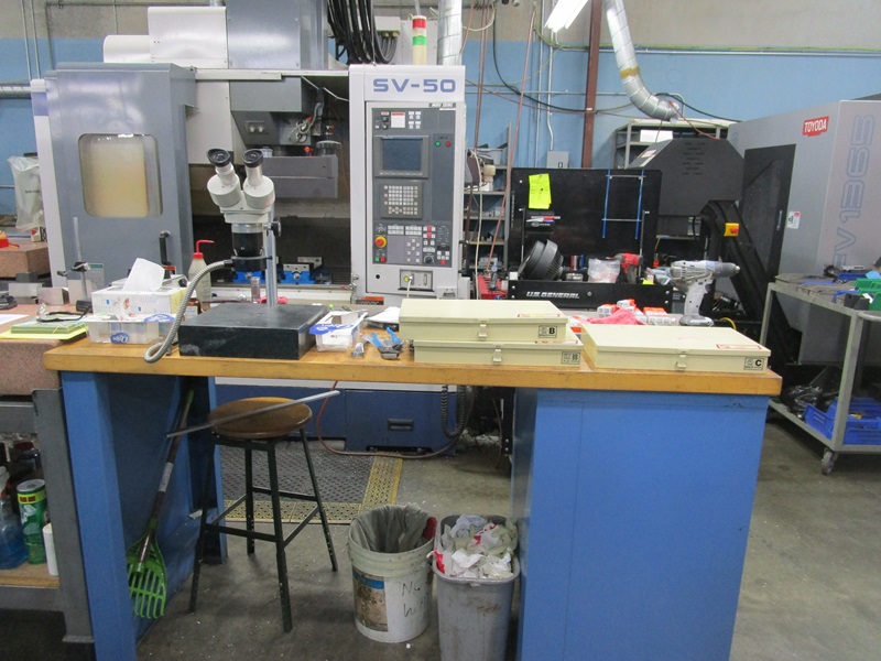 WORKBENCH W/LISTA TOOLBOX, PIN GAUGES, MEIJI MICROSCOPE & MISC. TOOLING