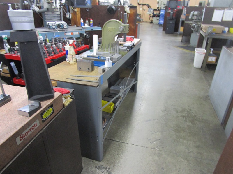 STARRETT GRANITE BLOCK, (3) KURT VISES, ARBOR PRESS & MISC.