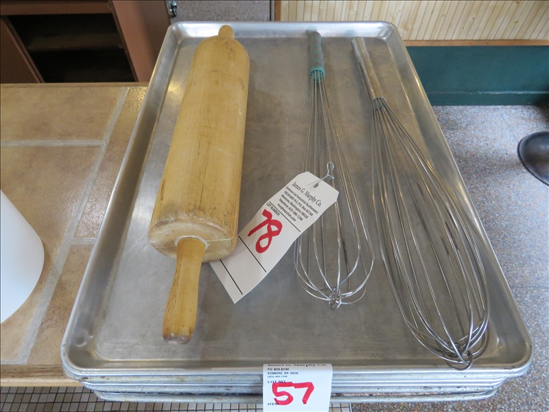 LOT, (1) ROLLING PIN & (2) LARGE WHISKS