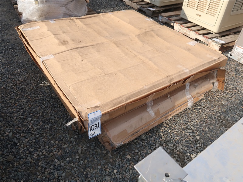 LOT, (2) 51" GALVANIZED WALL SHUTTERS & (1) 71"W X 40"H DRY ERASE BOARD W/STAND ON CASTERS ON THIS PALLET