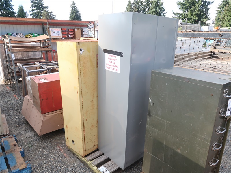 LOT, (1) FLAMMABLE LIQUIDS SAFETY CABINET & (1) METAL STORAGE CABINET ON THIS PALLET